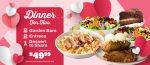 Cupid’s Dinner for Two includes an all-you-can-eat garden bar, 2 out of 6 entrees, and one shareable dessert that can be upgraded to a premium dessert for $3 or more. Even better is that it starts at just $49.99.