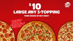 Fans can order the $10 Any 3-Topping Hut Crust deal at participating locations nationwide or at www.PizzaHut.com while supplies last.