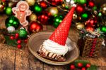 DESCRIPTION: A brownie topped with vanilla ice cream, hot fudge, crushed peppermint, whipped cream, and a red velvet cone with a marshmallow pompom (Available during Mickey’s Very Merry Christmas Party only).