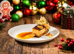DESCRIPTION: Sweet potato purée, jicama slaw, chestnuts, and apple-cranberry glaze (Available during Mickey’s Very Merry Christmas Party only)