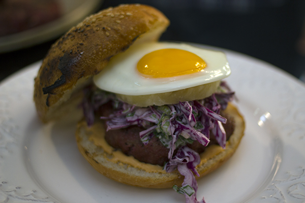 Char Siu Sriracha Mayo Turkey Burgers Topped with Pineapple & Red Cabbage Slaw, Mac ‘n Cheese Tater Tot Casserole and Peanut Butter & Chocolate Chip Ice Cream Pie
