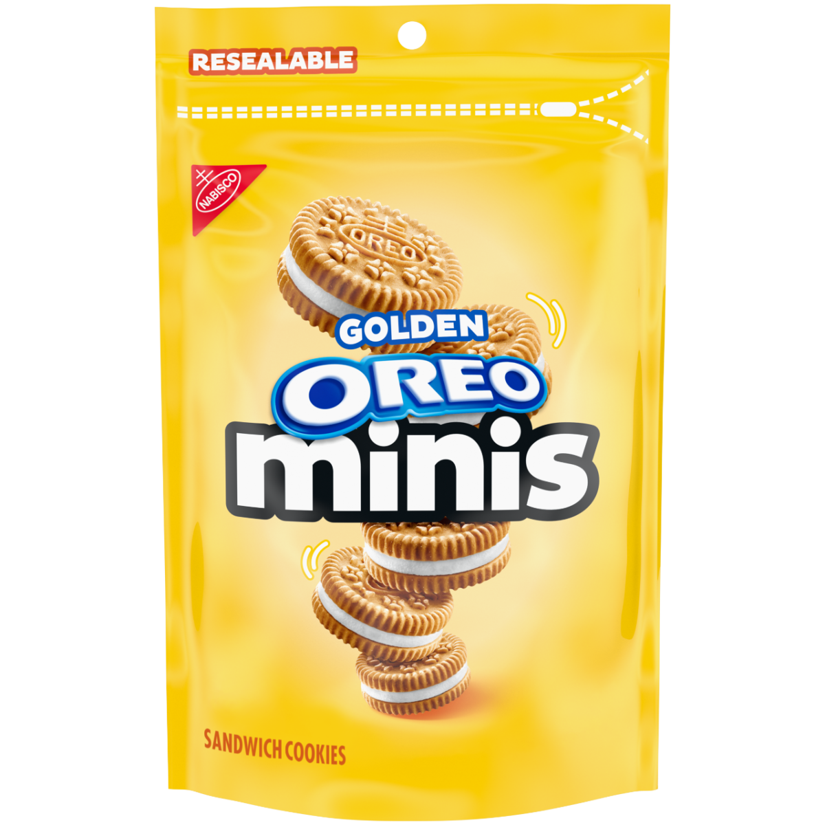 Golden OREO Minis are expanding their packaging lineup with new 8 oz bags and 3.5 oz Go Cups, joining the existing 3 oz bag. Nationwide starting January 5.