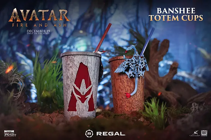 The Avatar: Fire and Ash popcorn bucket will be available at Regal Cinemas and AMC Theatres starting December 18 for a whopping $79.99. For those who don’t want to shell out that much, there will also be a branded popcorn tin, fiber optic cup, and banshee totem collectible cups available for purchase, each under $30.